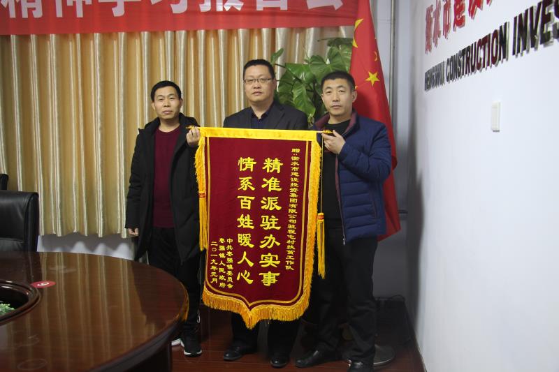 2月1日上午,棗強鎮(zhèn)黨委副書記劉紅光帶領程屯、閆楊官村“兩委”干部一行4人,將寫有“精準派駐辦實事 情系百姓暖人心”、“精準幫扶鋪就小康路 脫貧致富感恩建投人”、“精準幫扶系民心 脫貧致富奔小康”的三面錦旗贈送給市建投集團,感謝集團黨委及駐村工作隊為民幫扶脫貧、致富奔小康。