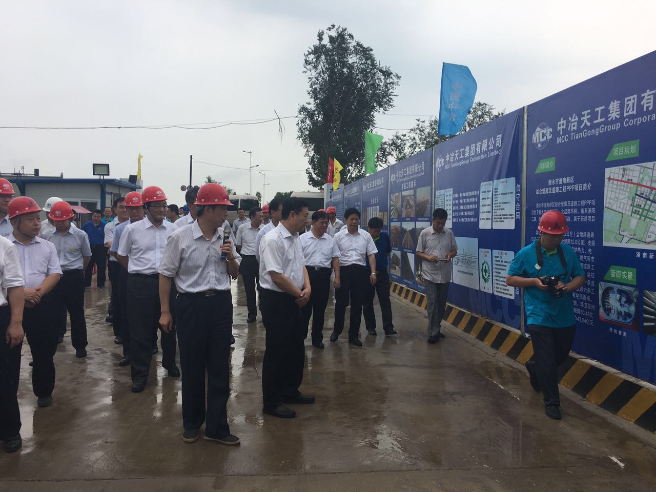 2017年7月15日建投集團(tuán)董事長(zhǎng)趙學(xué)軍、副總經(jīng)理宋立民陪同住建部副部長(zhǎng)倪虹、副省長(zhǎng)張古江、省政府副秘書長(zhǎng)康彥民、省住建廳副廳長(zhǎng)李賢明、副市長(zhǎng)王世坤、中冶集團(tuán)總裁張孟星等領(lǐng)導(dǎo)視察南外環(huán)綜合管廊現(xiàn)澆試驗(yàn)段,圖為視察現(xiàn)場(chǎng)。