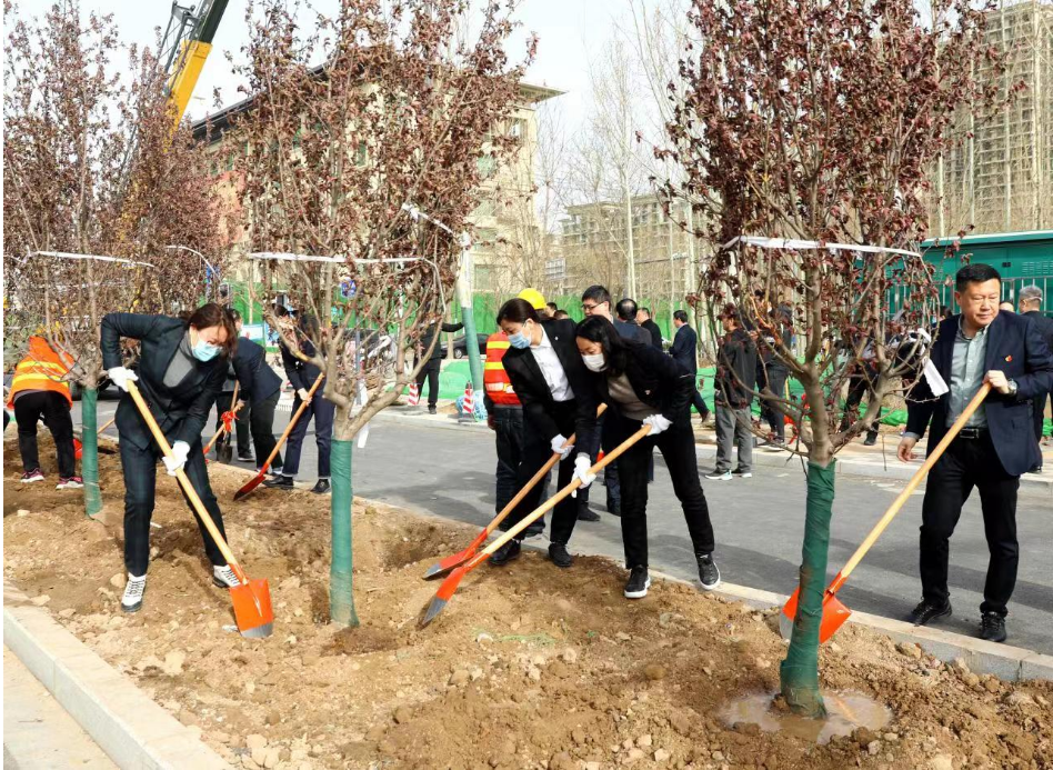 在植樹活動現(xiàn)場,大家分工協(xié)作,干勁十足,用實際行動深入貫徹落實生態(tài)文明理念,也為剛開通不久的滏陽路增添了綠意。此次植樹活動,共栽種法桐1900余棵、海棠495棵,還有碧桃、白蠟、獨桿月季等二十多種灌木。