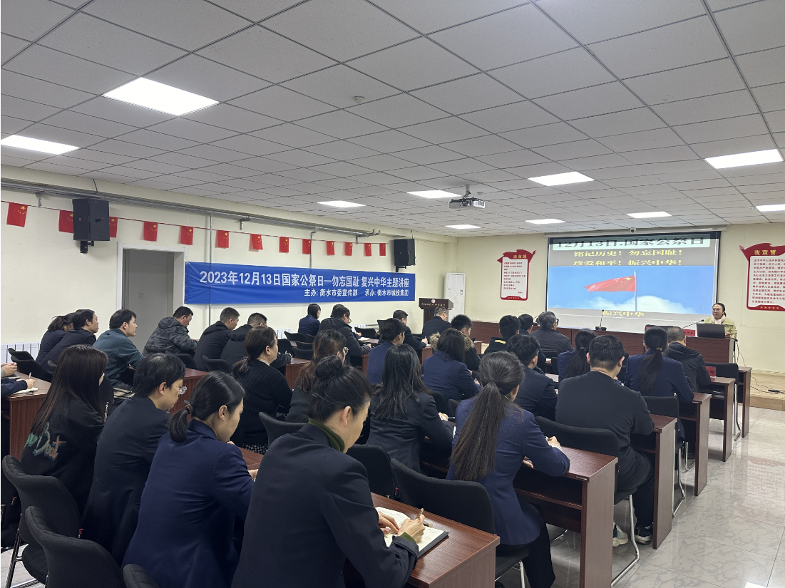 2023年12月13日是第10個國家公祭日,為銘記歷史、珍惜和平,市城投集團(tuán)舉辦“勿忘國恥 復(fù)興中華”主題講座活動,特邀市委黨校教授、教務(wù)處長宋玲者為集團(tuán)全體黨員、干部職工進(jìn)行專題授課。