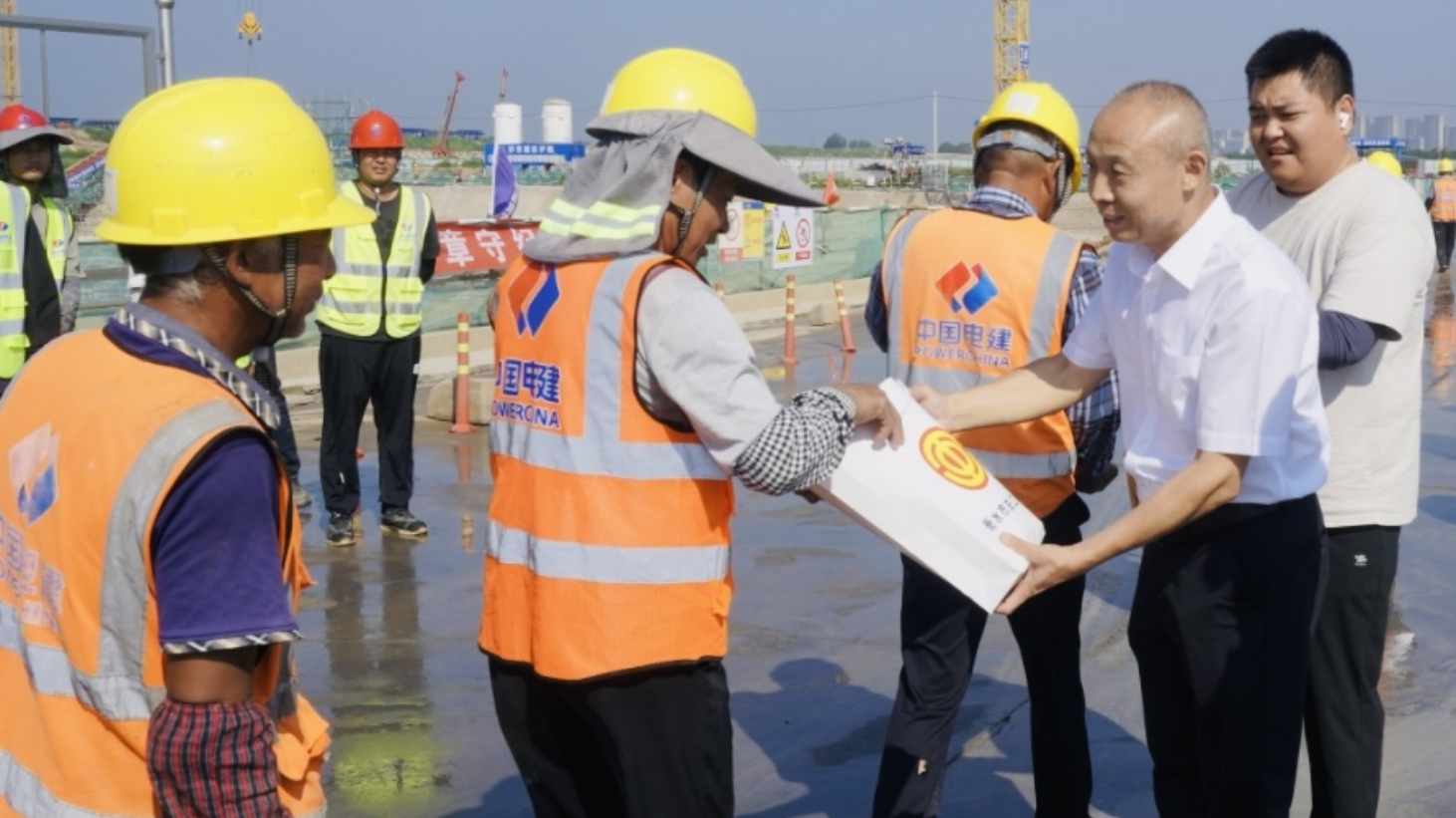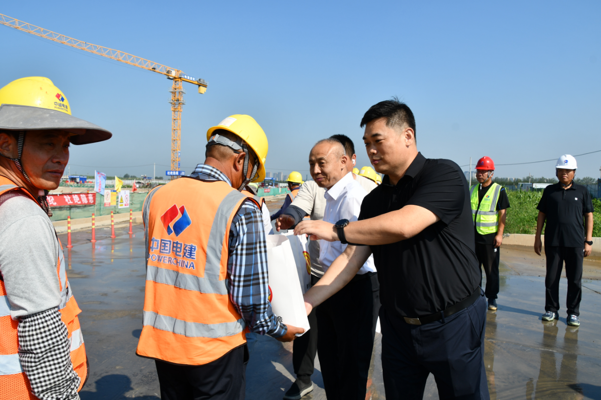 2025年8月11日上午,衡水市總工會黨組書記、常務副主席白彥君,黨組成員、副主席劉莉深入高鐵南站片區(qū)停車場項目現(xiàn)場開展送清涼慰問活動,看望堅守在項目建設一線、奮戰(zhàn)在高溫下的工程建設者們。市城投集團黨委副書記、總經(jīng)理谷學濤參加慰問活動。