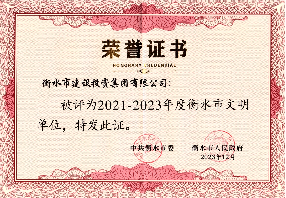 近日,集團被中共衡水市委、衡水市人民政府授予“2021-2023年度衡水市文明單位”榮譽稱號。