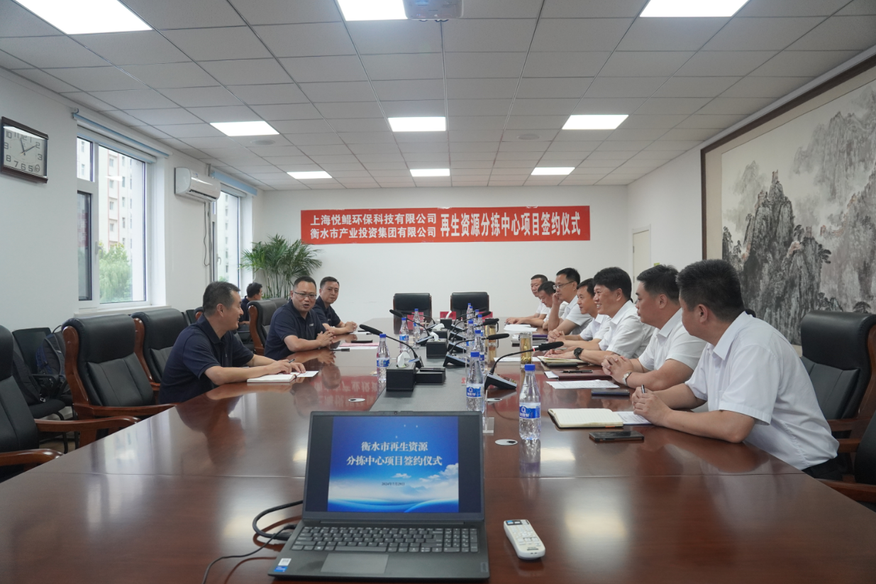 上海悅鯤環(huán)保科技有限公司是一家從事再生物資回收、倉(cāng)儲(chǔ)服務(wù)、城市生活垃圾服務(wù)與污泥處置等服務(wù)的企業(yè),在全國(guó)環(huán)保領(lǐng)域具有較強(qiáng)實(shí)力和發(fā)展?jié)摿?/span>。目前,已在全國(guó)建立了規(guī)模最大、產(chǎn)業(yè)最深、效率最高的回收網(wǎng)絡(luò),形成了規(guī)模化運(yùn)營(yíng)、全流程可控、商業(yè)閉環(huán)的模式,是全國(guó)生活垃圾分類回收的龍頭企業(yè)。此次簽約由產(chǎn)投集團(tuán)與上海悅鯤環(huán)保科技有限公司在衡水市設(shè)立項(xiàng)目公司,注冊(cè)資本1800萬元,建設(shè)再生資源分揀中心項(xiàng)目。